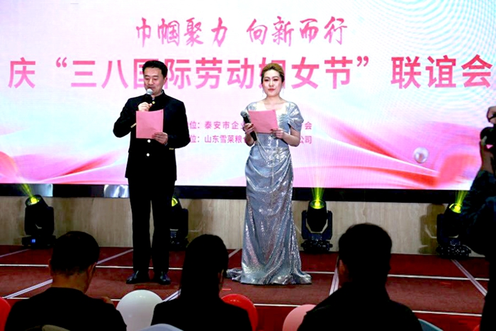 人海信息网讯(王德全 张子秋) 在“三八”国际劳动妇女节即将到来之际,3月7日下午,由泰安市企业与企业家联合会(以下简称“市企联”)主办、山东雪莱粮仓智能科技有限公司承办的“庆祝三八国际劳动妇女节”联谊会在泰安隆重举行。活动以“巾帼聚力,向新而行”为主题,通过暖心交流、精彩演出与深度对话,展现新时代女性企业家的智慧与担当,凝聚起推动城市高质量发展的“她力量”。