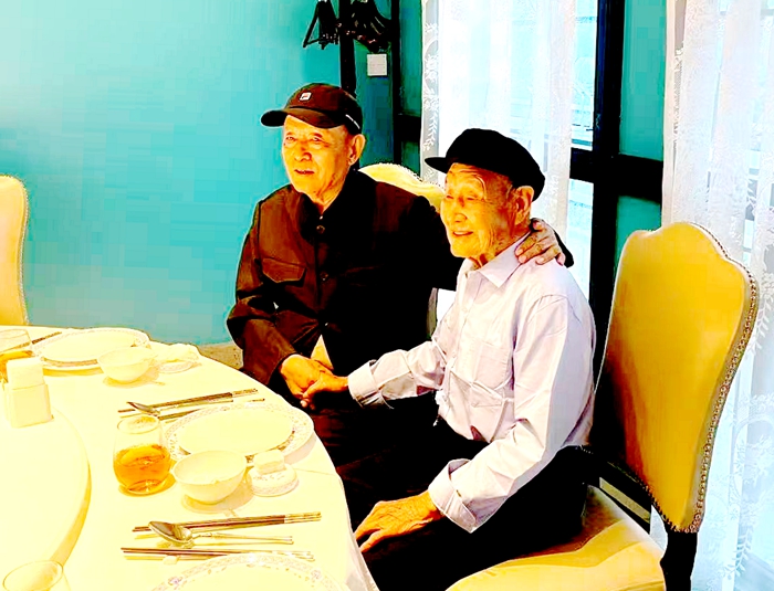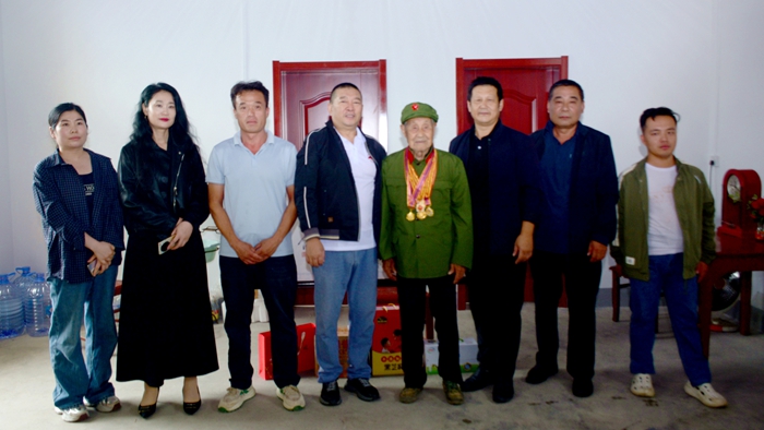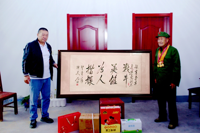 人海信息网讯(张春兄 冯爱云)传承红色基因,凝聚红色力量。9月27日,在国庆与中秋双节即将来临的温暖时节,在临沂市退役军人事务局与沂南县退役军人事务局的支持帮助下,被誉为"沂蒙红哥"的尹志林——这位身兼山东省志愿服务联合会理事、山东省职工达人、沂蒙精神传承人、沂蒙精神传承爱心大使多重身份的爱心使者,携着饱含敬意的慰问品,踏上了前往沂南县铜井镇两泉坡村的暖心之旅。98岁高龄的抗战老兵李荣光老人,如同矗立在时光长河中的一座精神丰碑,迎来了这位沂蒙精神的传承者。在铜井镇退役军人服务站副站长王长友、村党支部书记李明的陪同下,伴着老英雄儿子李树华、侄子等亲人的温暖目光,众人围坐聆听老人讲述那段血与火铸就的革命岁月。这场跨越时空的对话,正是尹志林"千场沂蒙精神宣讲"活动中闪耀的第194颗红星。