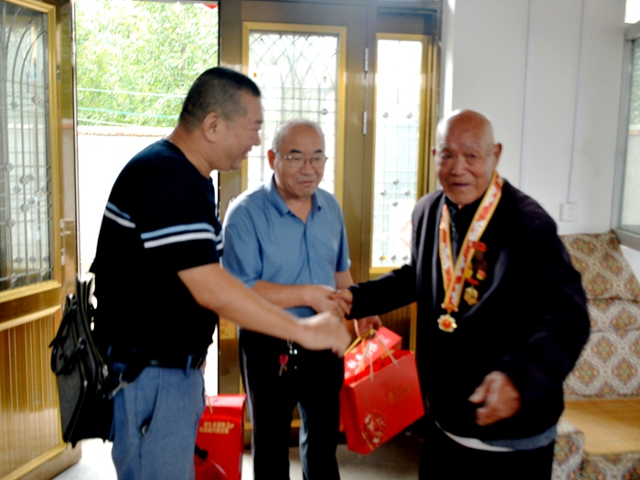人海信息网讯(张春兄 冯爱云)传承红色基因,凝聚红色力量。9月28日,值国庆中秋双节将至之际,在临沂市退役军人事务局和费县退役军人事务局的支持帮助下,沂蒙红哥尹志林千场沂蒙精神宣讲活动第195场,来到费县胡阳镇万福庄村,专程探望98岁抗战老兵郑国敬。山东省志愿服务联合会理事、山东省职工达人、沂蒙精神传承人、沂蒙精神传承爱心大使、沂蒙红哥尹志林,带着精心准备饱含深情敬意的慰问品,在胡阳镇退役军人服务站站长张中方的陪同下,与老英雄的儿子等人一起,回忆老人家在抗日战争、解放战争和抗美援朝战争时期的那段峥嵘岁月。
