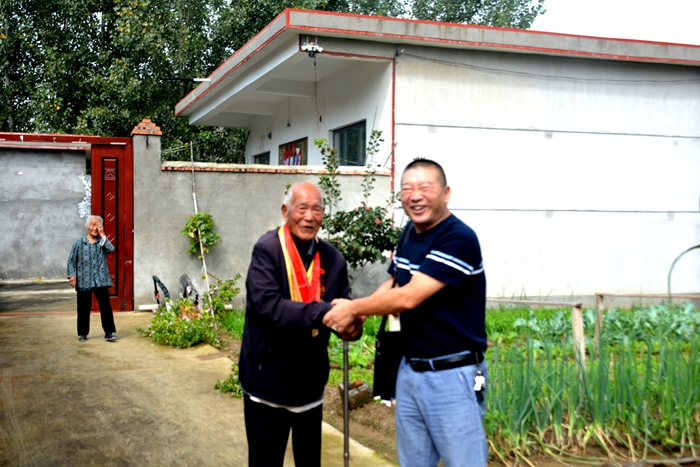 尹志林千场沂蒙精神宣讲活动第195场:探望费县98岁抗战老兵郑国敬