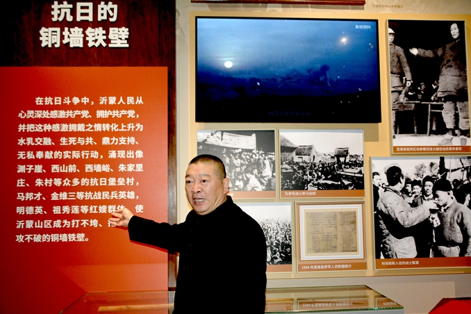 沂蒙山区十万英烈血洒疆场,乡乡有红嫂、村村有烈士;最后一口粮做军粮;最后一尺布做军装;最后一个儿子送战场;最后一件棉袄盖在担架上。这是伟大的沂蒙群众在共产党领导下为中国革命胜利所作出巨大牺牲贡献的生动写照。生长在沂蒙我很自豪,来这里参观我也很激动,我会尽我的全力,把革命先辈的事迹宣讲传播出去,让更多人们了解沂蒙党史知道英雄的故事。